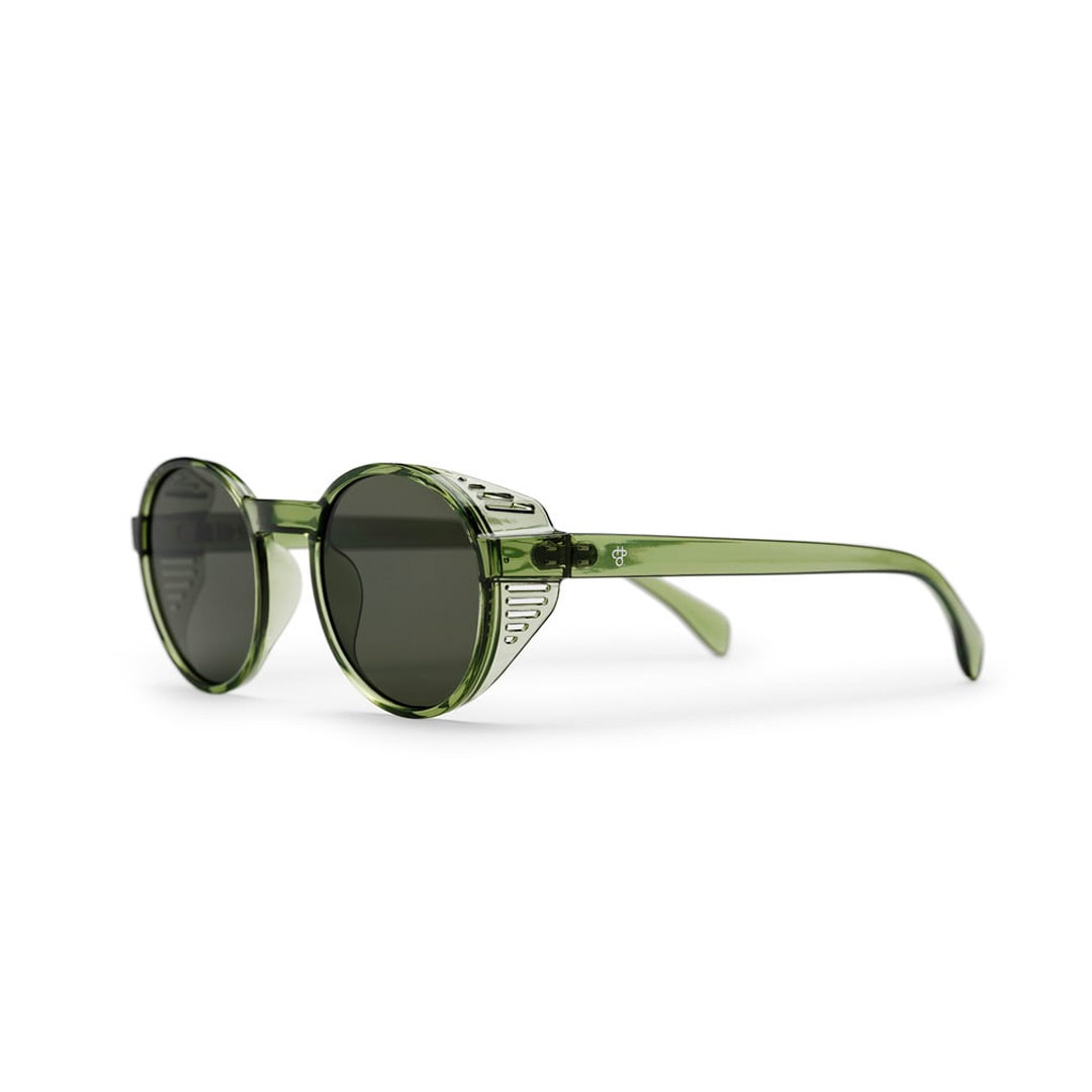 The Rille sunglasses are designed to protect your eyes from bright light in front of you, below you, and light that could reach your eyes from the side. Full on protection. Like a full-face ice hockey helmet!