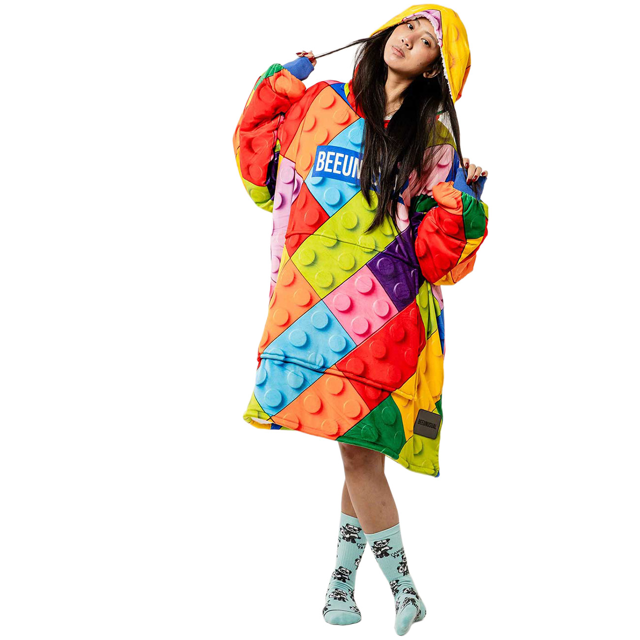 Cozy, fun, and pop! The Bee Unusual ‘Play With Me’ unisex poncho brings warmth and smiles! Made with super soft fleece, a hood, and a playful design, this unisex poncho is ready to create unforgettable moments for endless hours of fun.