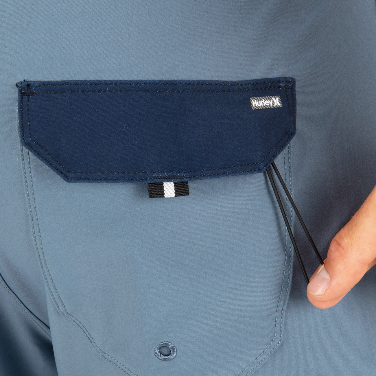 Live summer to the fullest with the Hurley Phantom Eco Block Party Solid 18" men's swim shorts! The men's swim shorts feature a drawstring waist, quick-dry stretch fabric, and a back pocket with velcro closure. Surf, Sun, Hurley.